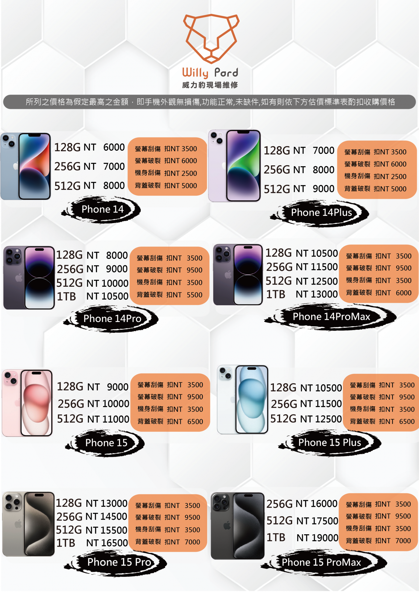 iPhone維修價目表