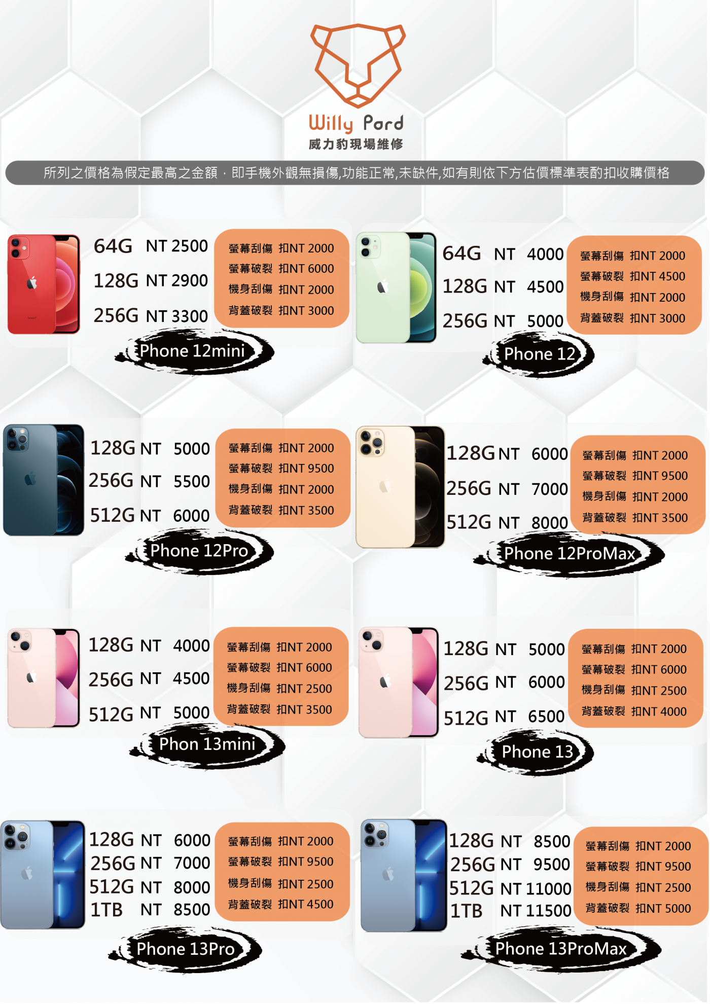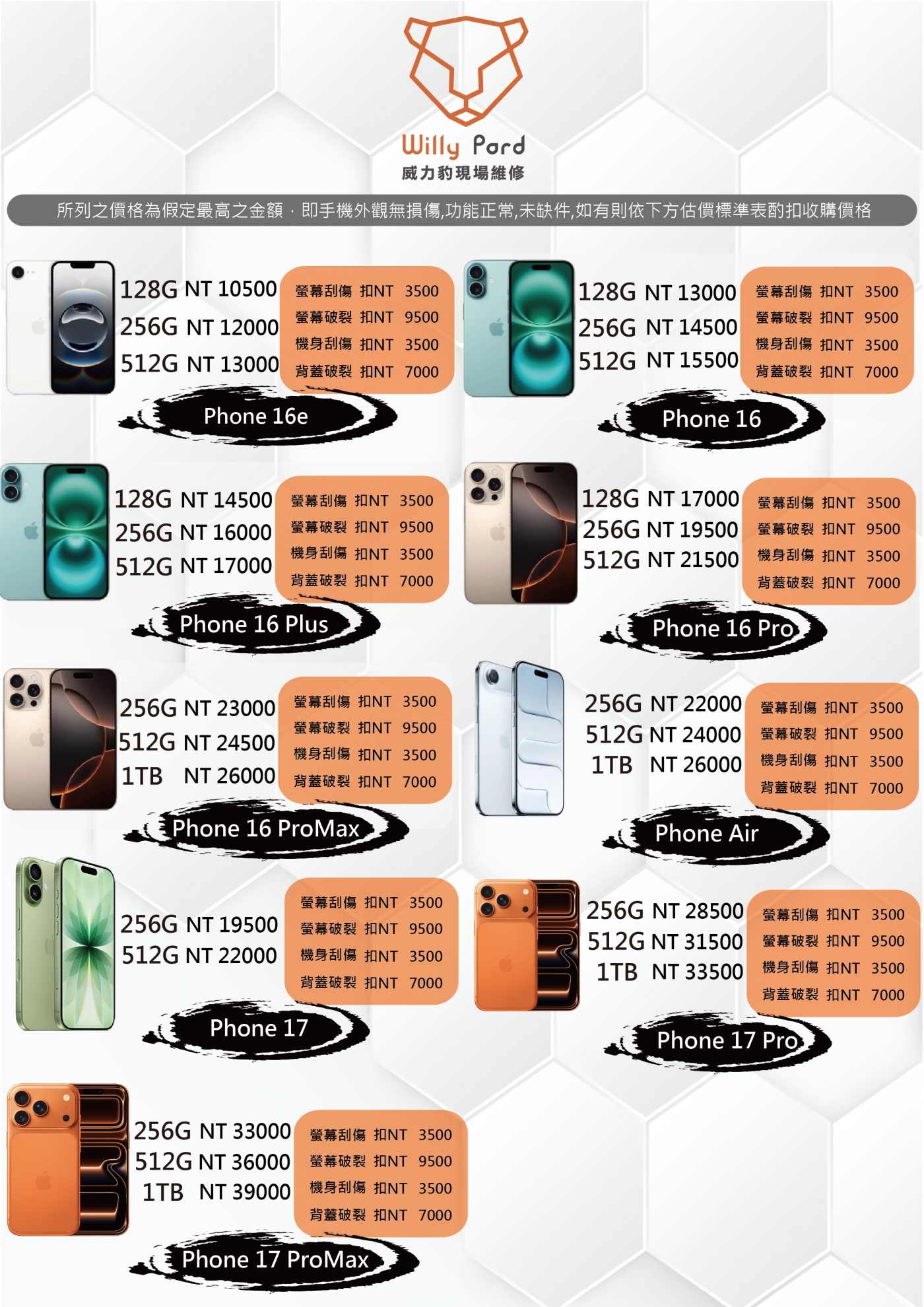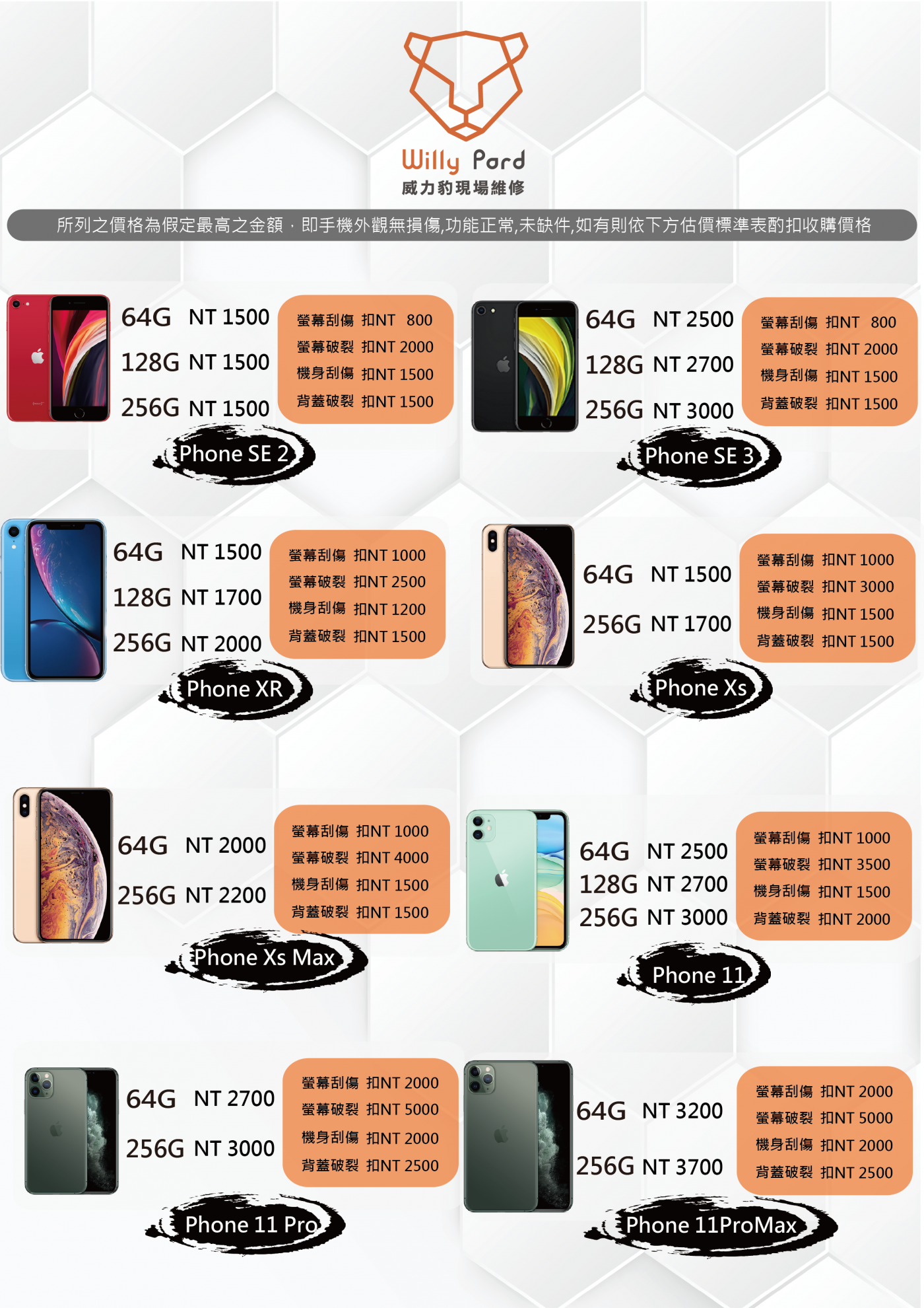 iPhone維修價目表